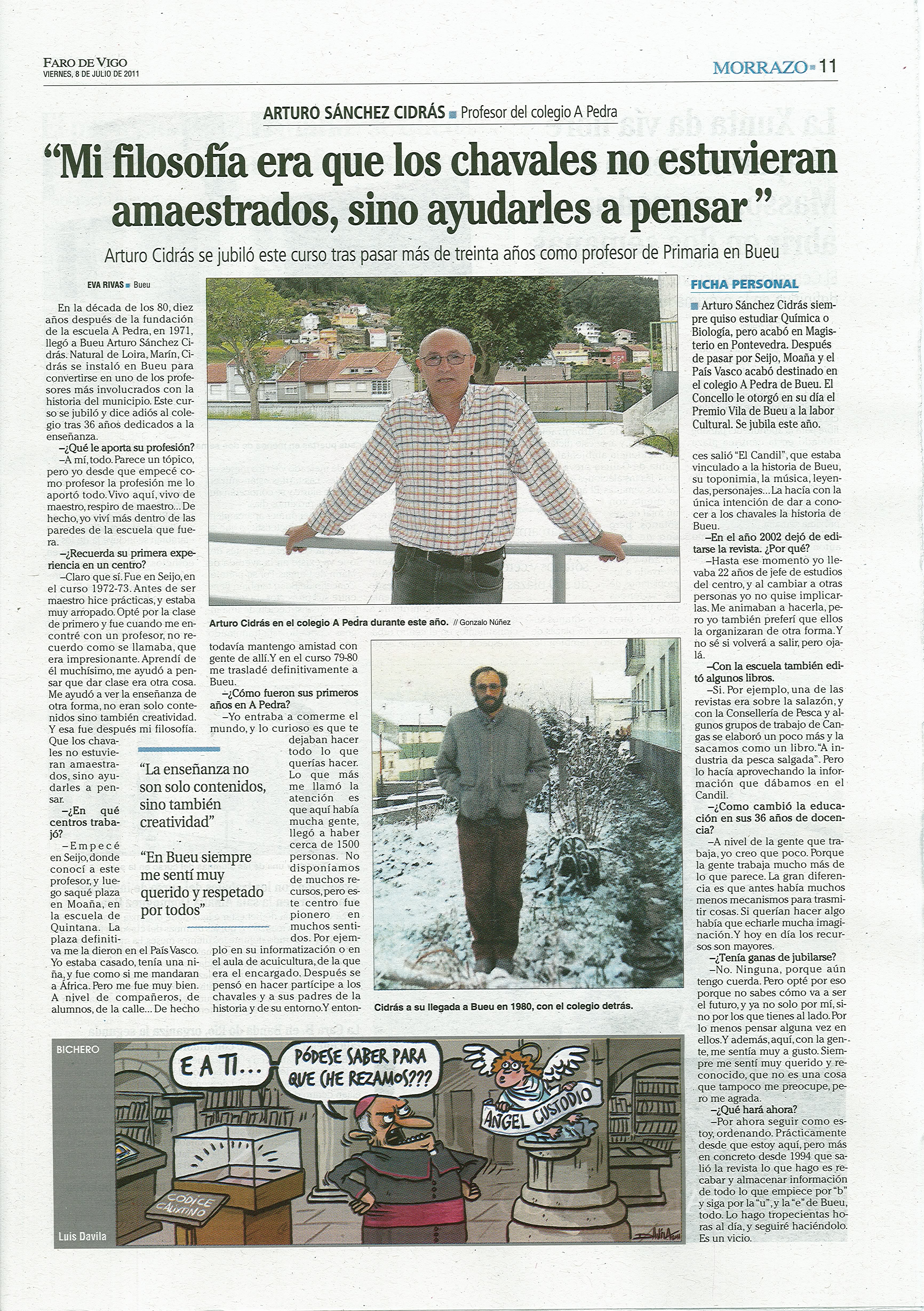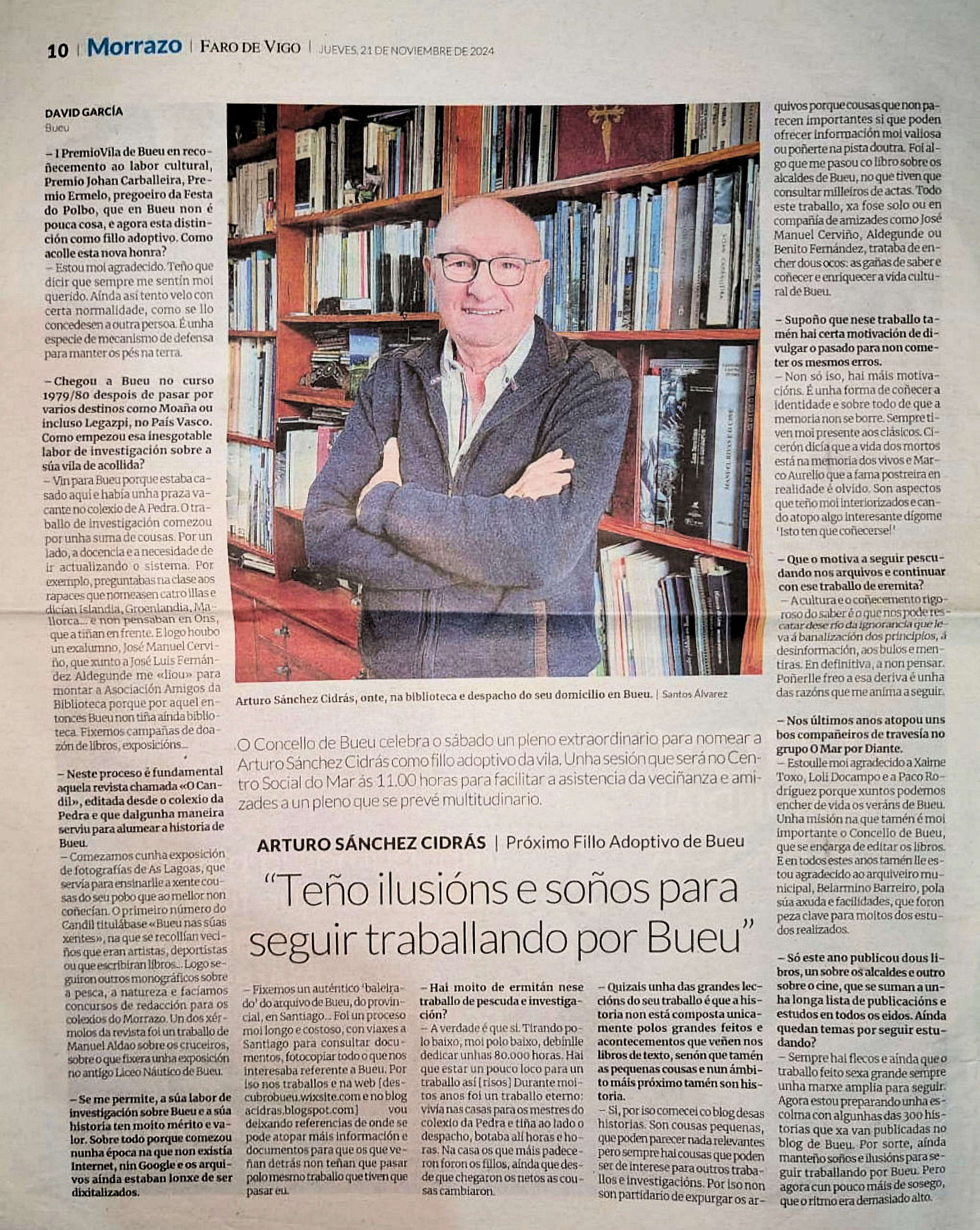 Arturo Sánchez Cidrás, mestre xubilado dedicado á divulgación da documentación, historia e patrimonio de Bueu.