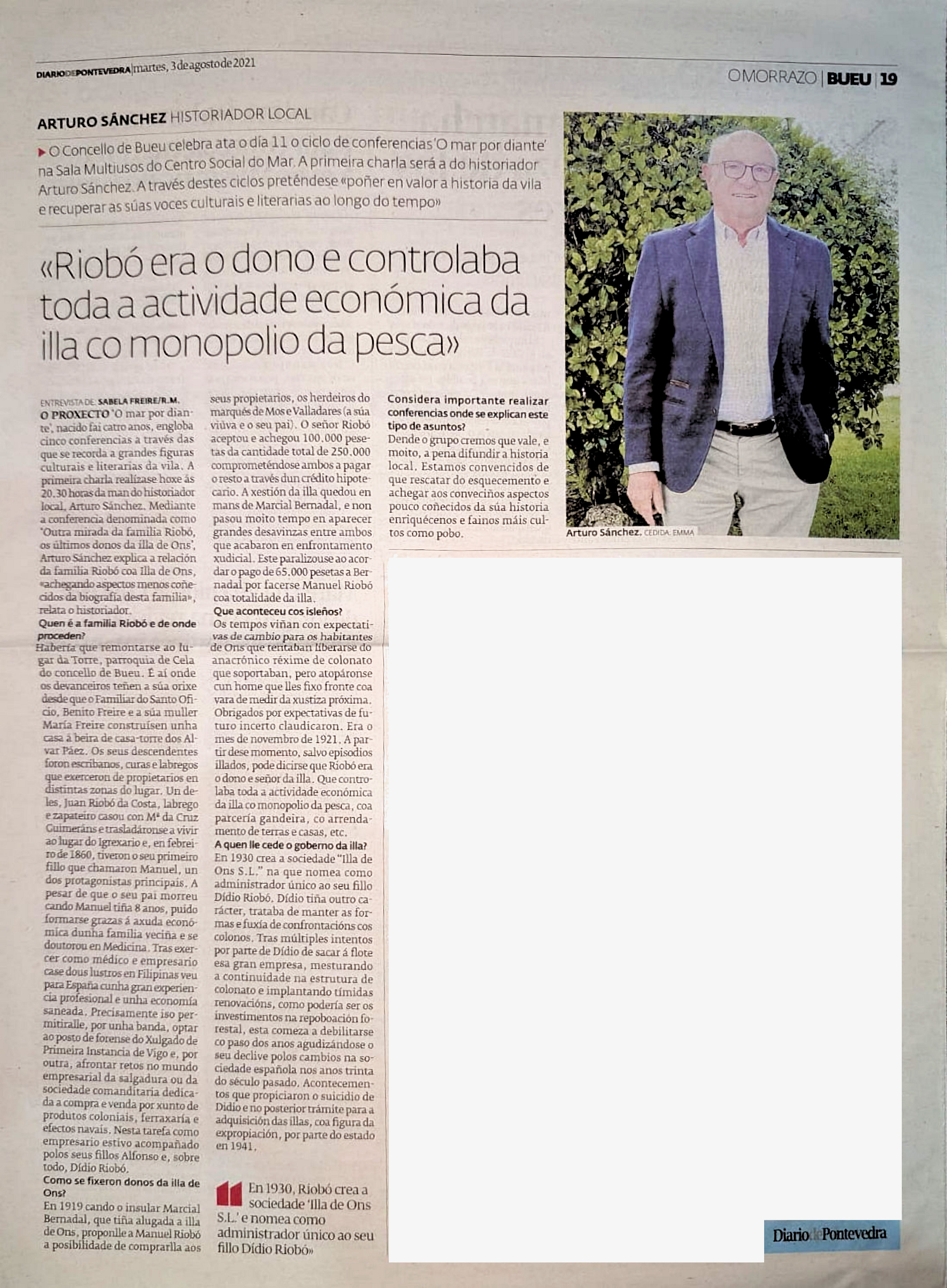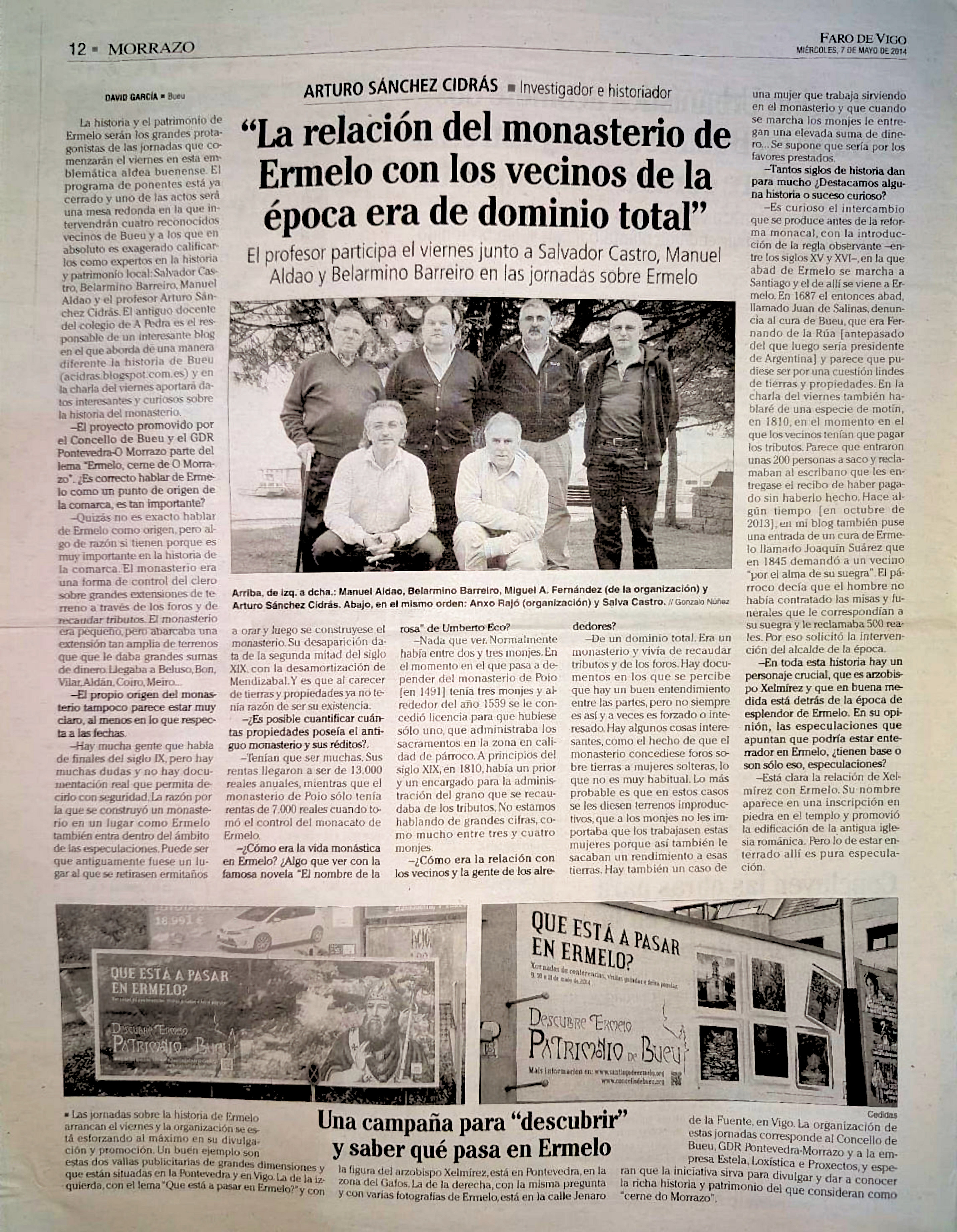Os Galos nº 7: "Os salgadeiros/conserveiros italianos en Bueu" e "Unha web e un blog onde a historia e a cultura de Bueu son os protagonistas". No nº 8 "Regateira rapaza" e "As ostras". No nº 9: "A escola do Pósito de pescadores de Bueu". No nº 10 "O bergantín-goleta 'Joven Casimiro'". No nº 11 "Manuel Cabodevila, de Beluso, explorador no río Bermejo, Arxentina". No nº 12 "Bergantín San Juan Bautista da familia Gallup e Vergés". No nº 13 "Apuntamentos para a historia da familia Lago Carballal. Emigrantes e industriais da salga na Praia de Beluso". No nº 14 "O bueués José Antonio Mauricio García guerrilleiro na URRS". No nº 15 "Ricardo Bescansa Castilla. Un bueués na industria químico-farmacéutica" No nº 16 Preito entre empresarios da conserva de Buewu polo plaxio nos deseños No nº 17 Insubmisión en Bueu ao pagamento das rendas. No nº 18 Bueu e a extracción das algas co "Merche" No nº 19 Apuntamentos sobre as redes de pesca (I)