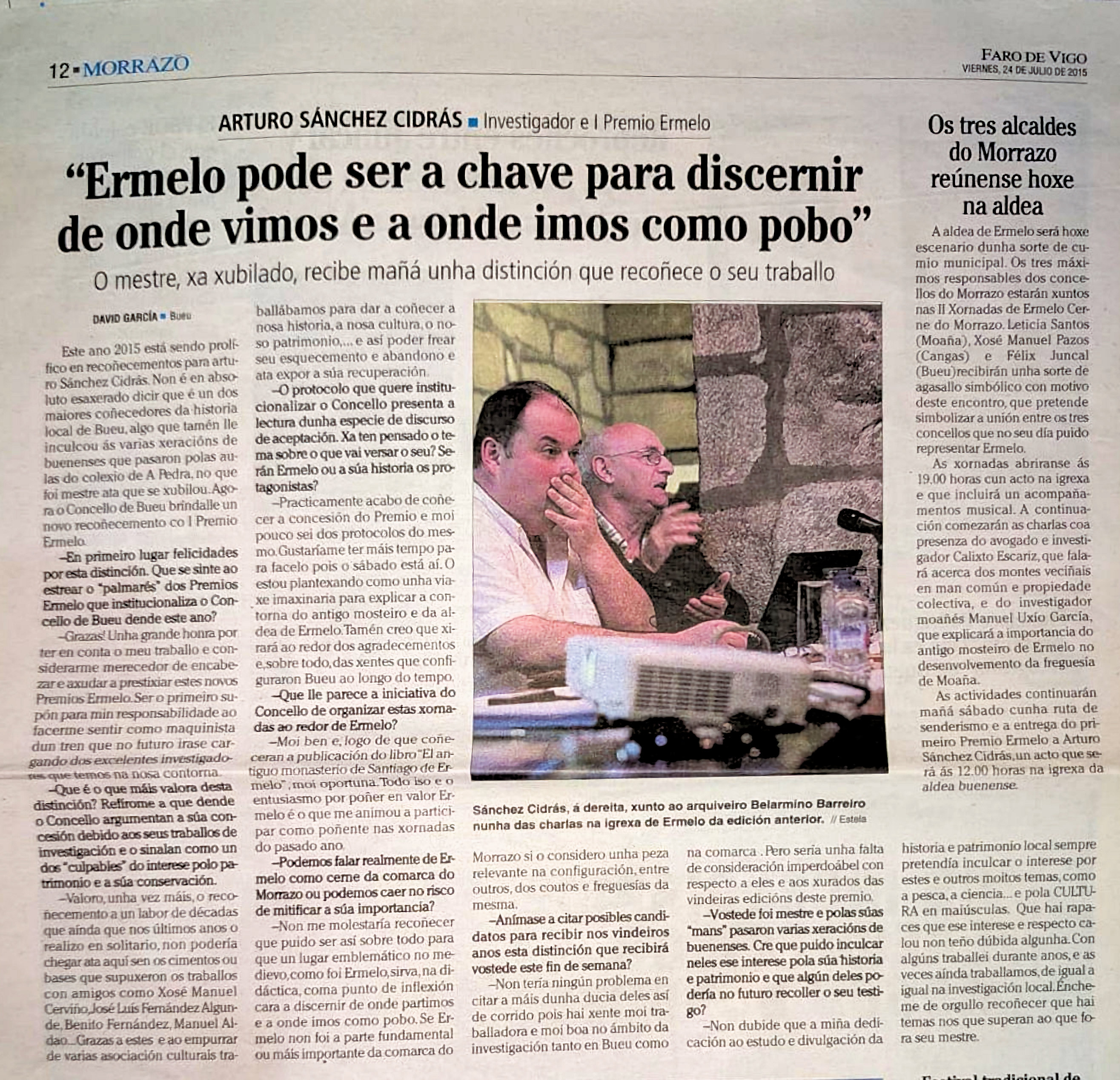 -I Premio Ermelo "pola súa contribución á documentación histórica do Morrazo"